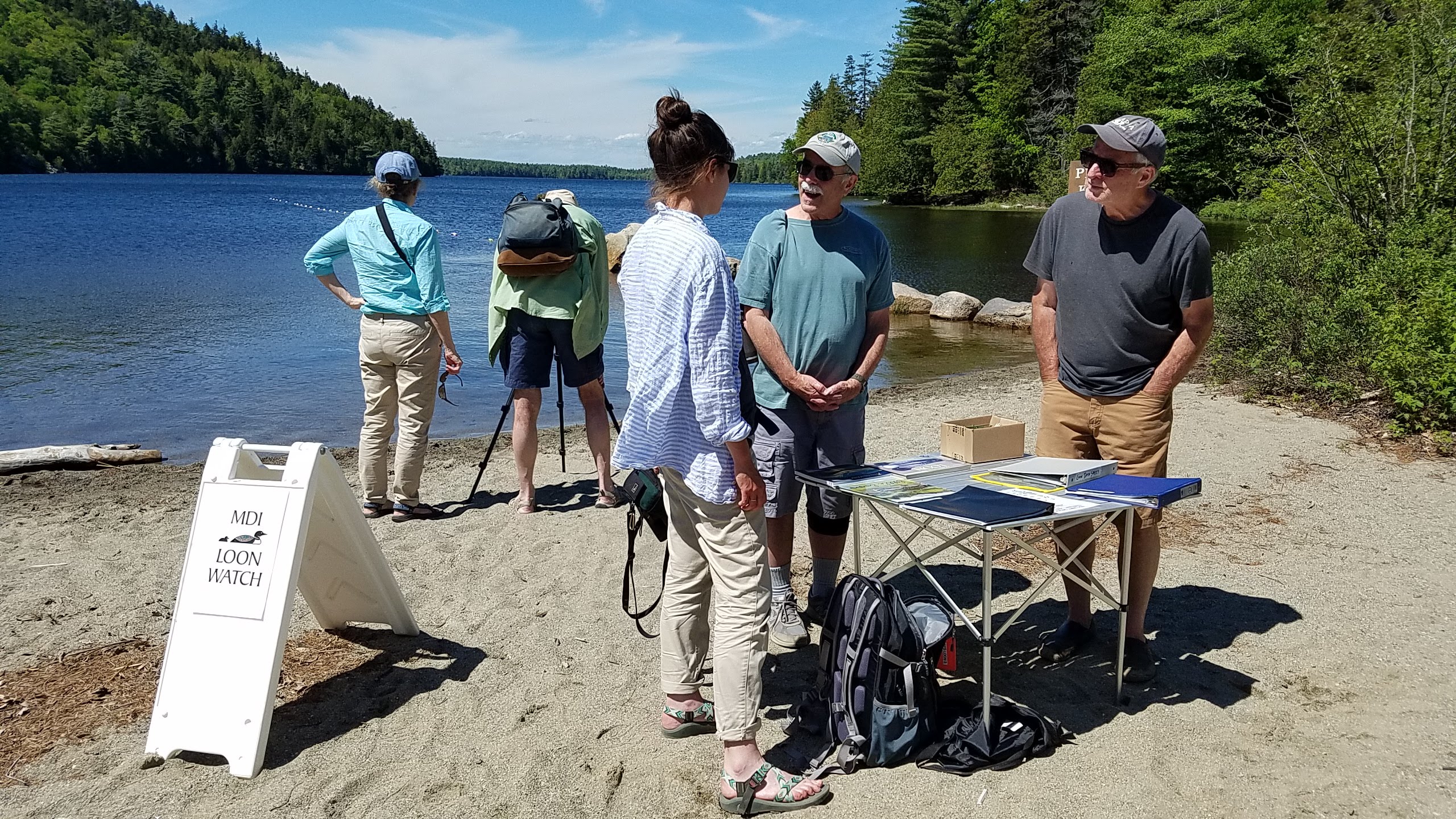 We study all of the common loons who nest on all the lakes of Mt. Desert Island, maintain fish passageways between Somes Harbor and Somes Pond and Long Pond, monitor the annual alewife (river herring) migration, sample and protect lake water quality, staff a Courtesy Boat Inspection station at Long Pond to help educate boaters about checking their equipment to minimize the likelihood of introducing aquatic invasive species, and many other projects.